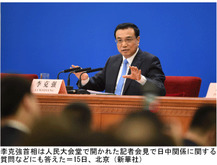 中国の李克強首相は15日、全国人民代表大会(全人代=国会)閉幕後に北京で記者会見し、中国経済について、…