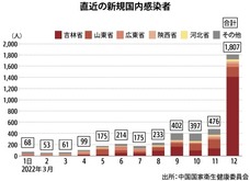 新型コロナウイルスの国内感染の急拡大が続いている。中国国家衛生健康委員会によると、新型コロナの新たな感染者を10~12日に3,081人確認した。このうち「国内症例」(中国本土での感染)は21省・自治区・直轄市で2,680人だった。12日の国内症例は1,800人を超え、国内症例に分類して発表を始めた20年3月4日以降の単日最多を大幅に更新した。