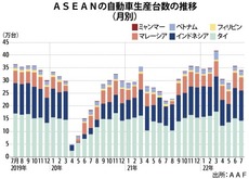 東南アジア諸国連合(ASEAN)の7月の自動車生産台数は33万8,863台だった。新型コロナウイルスのデルタ株対策で各国経済が停滞した前年同月からは5割以上増えたが、前月比では4.8%減少。1~7月累計は前年同期比22.4%増の239万8,962台となった。