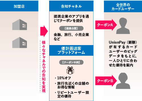 1 様々なタッチポイントでUnionPay(銀聯)カードユーザーに専用クーポンを発行可能