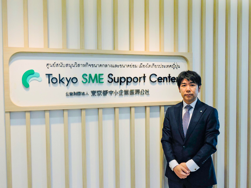 æ±äº¬éœäžå°äŒæ¥æ¯èå ¬ç€Ÿã®åã®æµ·å€æ ç¹ãšããŠ2015幎ã«èšç«ããããTokyo SMEãµããŒãã»ã³ã¿ãŒãã¿ã€äºåæããã¿ã€ãžã®é²åºãæ€èšããäŒæ¥ã«å¯Ÿããåçš®ã®çžè«ãåžå Žèª¿æ»ãªã©ã«å ããåšã¿ã€äŒæ¥ã«å¯ŸããŠã¯ãæ³åãçšåãäŒèšã人äºã»åŽåãªã©ã®å°éå®¶ã«çžè«ããæ©äŒãç¡æã§æäŸããŠãããä»å¹ŽïŒæ20ïœ24æ¥ã«éå¬ãããTokyo SMEããžãã¹ãŠã£ãŒã¯in Thailandãã§ã¯ãæ³äººæè²æã人äºã»åŽåãäŒèšã»çšåãæ³åãªã©å¹ åºãåéã®çžè«å¡ãè¬åž«ãšããŠãã¿ã€ã®é§åšå¡åãã®é£ç¶ãªã³ã©ã€ã³ã»ãããŒã宿œãå®éã«ã¿ã€ã§çµå¶ã«æºããçŸå°æ³äººã®ç€Ÿé·ãç»å£ãããããžã¡ã³ãã人æè²æã«ãŸã€ããçµéšè«ããåæ§ã®èª²é¡ãæ±ããé§åšå¡ã«å¯Ÿããã¢ããã€ã¹ãèªã£ãã