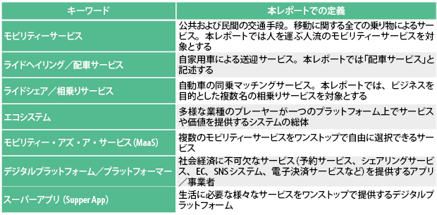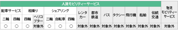 本レポートが定義するモビリティーサービスの対象範囲