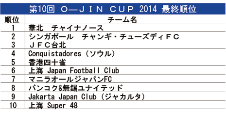 アジア各地に在住する40歳以上の日本人サッカーチームが実力を競い合うサッカー大会「第10回O―JIN CUP 2014」(NNAなどが協賛)が21日、沖縄県恩納村で開催された。アジア各国・地域の10都市・10チームが初夏を思わせる陽気の下で熱き戦いを繰り広げ、中国の華北チームが優勝カップを手中にした。