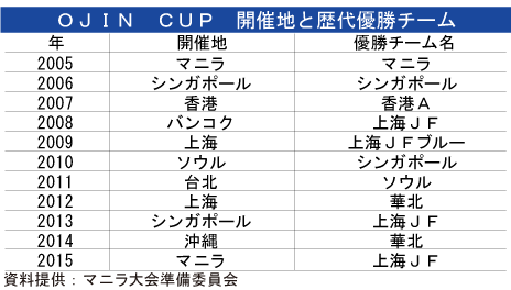アジア各地に在住する40歳以上の日本人サッカーチームが競う「第11回OJIN CUPマニラ大会2015」(NNAなどが協賛)が7日、マニラ首都圏モンテンルパ市アラバンで開かれた。大会第1回開催の地にアジア13都市から12チームが集結。夏の太陽が照りつける中、上海ジャパンフットボールクラブ(上海JF)が優勝カップを手にした。