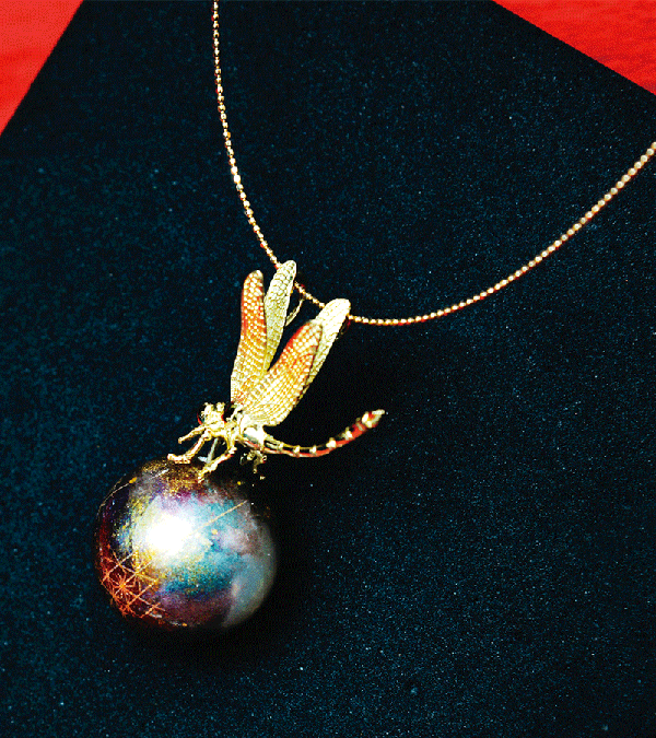 作品の特徴は、漆や蒔絵(まきえ)といった日本の伝統技法を駆使しながらも宇宙や惑星など未来的なモチーフを取り入れ、個性を出していることだ。中でもクモ、トンボをデザインした作品は海外でも反響が大きかったという。