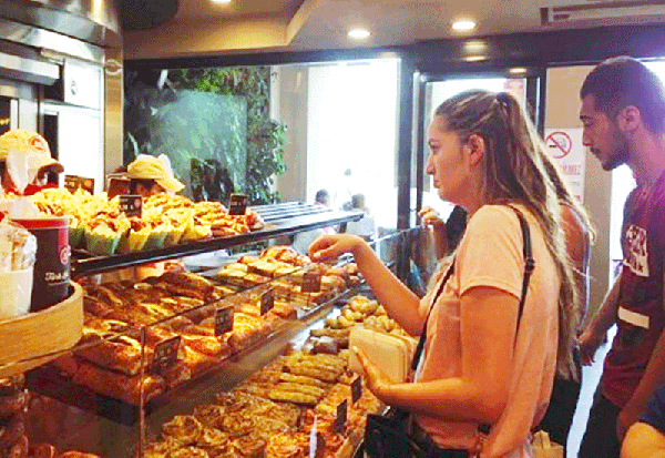 2002年からイスタンブールを中心に国内外で展開するベーカリー。早朝からオープンしているため便利。おすすめは、ドーナツ型でごまをまぶした伝統的なパン、シミット(1.25トルコリラ=約52円)。カフェ席でゆったり紅茶を飲みながら食べられる。