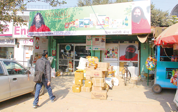 インドの首都デリー近郊、ハリヤナ州グルガオン。鉄道の駅から10分ほど歩くと、ひげ面の男性を描いた大きな看板が見えてくる。看板の男性は日用品・食品大手、パタンジャリ・アーユルベードの創業者、ババ・ラムデブ師。ここはパタンジャリの店舗で、化学品を一切使わない「ナチュラル」や「オーガニック」を売りにしたシャンプーや石けん、清涼飲料、栄養補助食品など幅広い商品が並ぶ。