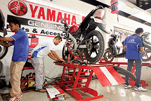 売れ筋は「Mio M3」(店頭価格1,500ドル)。使いやすさ重視のスクーター型モデルで日常の足として利用される。「客層は若年層がかなり多い。インドネシアの流行をフォローする傾向がある。若者の購買力が付くのにしたがって、今後はファッション性やパワーを重視した150ccクラスのスポーツモデルが拡大する見込み。無登録車両や違法改造に対して政府が取り締まりを強化しており、合法に運営するショップの利用につながると期待している」(ヤマハ発動機 海外市場開拓事業部 小野智子主事)