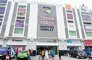 東ティモール唯一の近代的なショッピングモール「ティモールプラザ」。スーパーマーケットやホームセンターなど大型店をはじめ総勢100を超えるショップが出店する。1〜2階が商業施設、3階以上はオフィスやホテルで構成される複合施設でもある