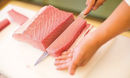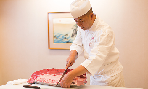現地での魚に対する価値観は脂の乗りと新鮮さだ。現在、長崎から仕入れている養殖マグロは脂も多いことで人気が高いが、天然マグロの赤身などはなかなか受け入れられないそうだ。また白身魚の昆布じめや光り物の酢じめなど、1~2日置いて熟成させる調理法もあるが、こうしたものも生食では抵抗を持たれてしまう。「さまざまな食べ方をお勧め、提案し、料理の神髄に触れていただこうと努力の最中です」(同)