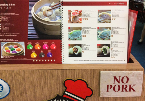 台湾系飲食店は「NO PORK」対応を表示=ジャカルタ