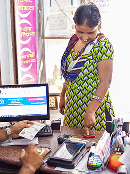 アドハーは国民の生活を変え、ビジネスも生んだ。首都ニューデリーの住宅街にある金融サービス店では、1人の女性が携帯電話料金のプリペイド(前払い)と送金手続きをしていた。現金払いではなく、指紋認証で決済する。専用機器にアドハーで登録した指紋を読み取ると、数分で取引が完了した。