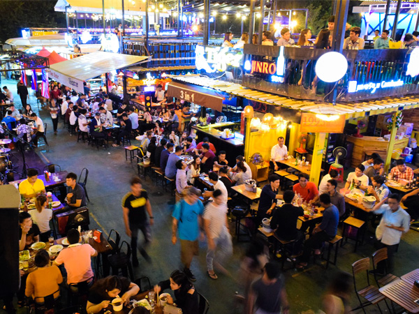 新スポットが誕生するまで、数十件の飲み屋が連なった場所は、欧米人旅行者が多く宿泊するプノンペン中心部東側の川沿いや中心部の一画などに限られていた。いずれも外国人をターゲットにしているため地元民にとっては高めの料金で、プノンペンっ子の若者が気軽に集まり、飲み屋をはしごできるような場所は少なかった。