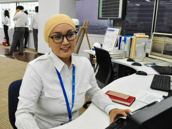 グリジャナテ・アバケ(GULIJIANATI Abake)さん(34)は中国の新疆ウイグル自治区出身。自身の専門分野であるリモートセンシングを究めるため千葉大学に留学、博士課程を修め、昨年ウェザーニューズに入社した。地象センターで地震・津波のモニタリングや、航空機の安全なフライトを支援するため火山灰の拡散予測などを担当している。