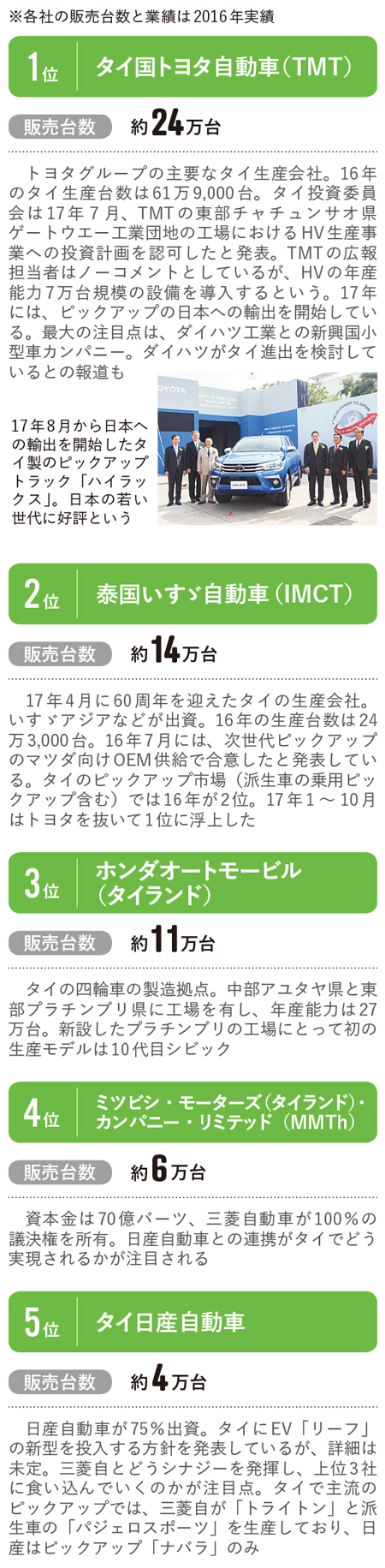 18年も市場は上向くとみられる。5年前に実施された「ファーストカー政策」で初めて自動車を購入した消費者層の買い換えが本格化する可能性がある。また東部経済回廊(EEC)政策などによるインフラ開発の経済効果も見込めそうだ。