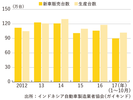 17年のインドネシアの自動車市場は中央銀行による不良債権の圧縮を目的とした自動車ローンの融資厳格化からスタートした。特に価格の安い乗用車の販売が影響を受け、通年の小売り台数に影響を与えた。これに対して商用車は、昨年上半期の不調から一転し、好調な販売を記録している。石炭やパーム油などの資源価格の上昇と政府が推進するインフラ開発が本格化していることが背景にある。