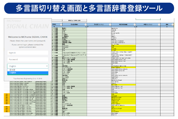 mcframeがもともと得意とする、言語の切り替えや多言語対応の辞書機能も搭載しているので、海外での需要が大きいという。導入実績は約30社で、およそ半分をタイや中国、米国、フランス、メキシコ、インドネシアと海外が占める。自動機を持つ工場であれば自動車や食品など、業種を問わず採用されている。