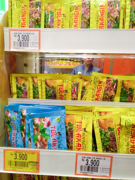 インドネシアでは植物の根や葉などを原料とするジャムーが、今でも多くの人に愛飲されている。インドの伝統医学、アーユルヴェーダの流れをくんで、天然ハーブや蜂蜜など自然素材の生薬を配合して作る薬で、中国の漢方と同様に、風邪っぽい、せきが出る、滋養強壮など、病気の予防やリハビリで使われている。飲むだけでなく、湿布や外皮用薬としても用いられる。症状にあわせてジャムーを調合する屋台や専門店「ジャムースタンド」だけでなく、スーパーや薬局ではパッケージ化されて売られているものもある。屋台での個人販売から大企業まで、ジャムーの販売業者はインドネシア全土で数え切れないほどだ。