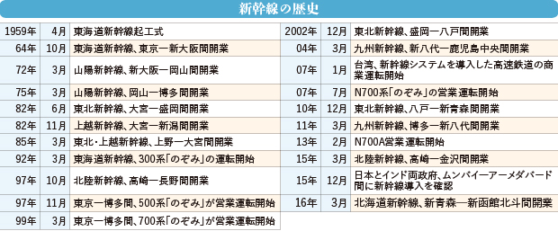 アジアで初めてのオリンピックが東京で開催された1964年10月、東海道新幹線が東京―新大阪間で開業した。最高時速210キロという世界初の高速鉄道の誕生だった。その後、山陽、東北、上越、九州、北陸、北海道に路線網を拡大する一方、半世紀以上にわたって重大事故は起きていない。最短3分30秒という非常に短い間隔のダイヤ、停車駅の異なる複雑な運行にも関わらず、平均遅延率1分以内という高い定時運行率は、世界に誇る日本の技術力の象徴だ。