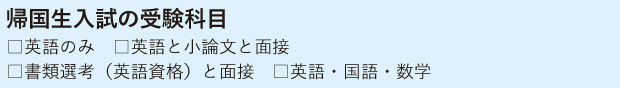 ご覧のようにすべて英語が必須になっています。そのため帰国子女はおしなべて進学に有利と言えます。ただその一方で、人気のある最難関校入試では英検準1級保持者がザラですから、競争レベルは高いという側面もあるということを認識しておいたほうが良いでしょう。