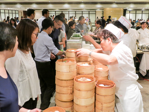 実はこのお店、横浜中華街に本店を構える聘珍樓(へいちんろう)の香港分店で、1990年にオープン。客席が約1,200席(!)という超大型店舗だ。スタッフがほかほか点心をワゴンに入れ店内を回り、客がその中から食べたいものを選ぶワゴンサービス式で飲茶を楽しむことができる。(ちなみに、最近は香港でもワゴン式で提供するお店が減少し、レアなサービスとなりつつある)。