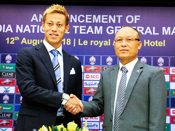 日本代表としてサッカーワールドカップ(W杯)に3大会連続出場した本田圭佑選手(32)は8月12日、カンボジア代表の実質的な監督兼ゼネラルマネジャー(GM)に就任した。契約期間は2年で、現役選手は続ける。関係を築いてきたカンボジアサッカー連盟(FFC)に打診し、実現した。カンボジア代表が目指すべき独自のサッカースタイルを構築するとともに、カンボジアの魅力を世界に発信していく。(文・写真=NNAプノンペン支局 竹内悠)