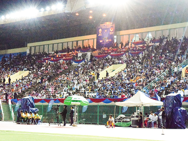 カンボジア代表のホームスタジアムでもある「オリンピックスタジアム」は老朽化が進んでいる=プノンペン(NNA撮影)