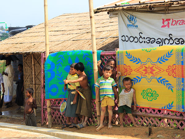 コックスバザール近郊の難民キャンプで暮らすロヒンギャ族の子供たち
