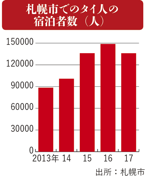 「1972年に札幌で冬季オリンピックが開かれましたが、冬季スポーツに馴染みのない東南アジアの若い人々からは札幌の知名度が低いのは否めない」と、札幌市スポーツ局スポーツ部の金谷泰亨・企画事業課長。だがチャナティップ選手のインスタグラムのフォロワーは200万人と、札幌市の人口197万人を超える人々がコンサドーレを通じて札幌に注目しており、「『チャナティップ選手と言えば札幌、札幌といえばチャナティップ選手』という認識が東南アジアで広がり、スポーツを通じたアジアとの交流が深まることに期待している」と話す。事実、札幌市によると、2017年のタイからの宿泊客は13万6,070人と、13年の8万8,495人に比べると、5年間で54%増加した。アジア向けスポーツツーリズムの可能性も広がりそうだ。