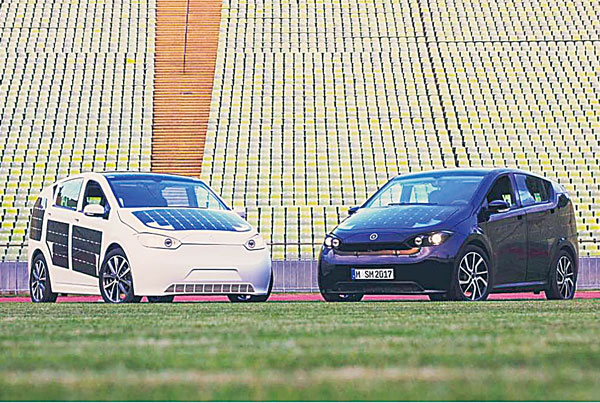 ボディーに248のソーラーセルを貼り合わせた独新興企業ソノモーターズの「シオン」。太陽光だけで航続距離は34キロ(夏のドイツ)で、通常の充電(航続距離250キロ)も可能だ。2020年末には量産を開始し、販売予定価格は2万5,500ユーロ(約305万円)。既に1万件以上の購入予約を集めた。中国資本のスウェーデンメーカー「NEVS」の工場(旧サーブ)で生産し、独メガサプライヤーのボッシュやコンチネンタルもパートナーに。