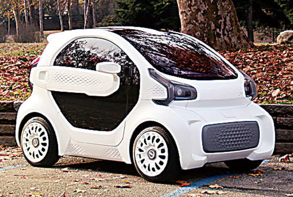 中国の3Dプリンター素材のスタートアップ「ポリメーカー」とイタリアの「Xエレクトリック・ビークル(XEV)」が協業。両社は2018年3月、低速EV(LSEV)を19年6月までに販売開始すると発表したが、まだ実現はしていない。最高時速69キロ、航続距離150キロ、価格は7,500米ドル(約79万円)で欧州向けに販売。部品は57モジュールに集約化している。イタリア国営郵便が5,000台発注、との報道もあった。3Dプリンター製自動車はユーザーのニーズに合った「カスタマイズ車」の生産が可能だが、コスト低減が課題だ。