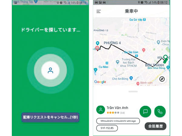 タクシー配車アプリは2020年までにマイリンの全車両に導入する(NNA撮影)