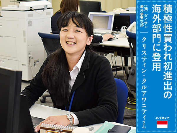大学を卒業してからは日本国総領事館職員やフリーランスの通訳、小説の翻訳家として働いた後、ダイサンに入社した。「関西地方の飾らない雰囲気はインドネシアとよく似ている」と感じるクリスティンさん。「学生時代に東京・渋谷を訪れた際、日本語で道を尋ねたのに『英語は分からない』と突っぱねられた。関西ではそんなことはなかったのでとてもショックで、『就職するなら関西』と決めた」と笑う。