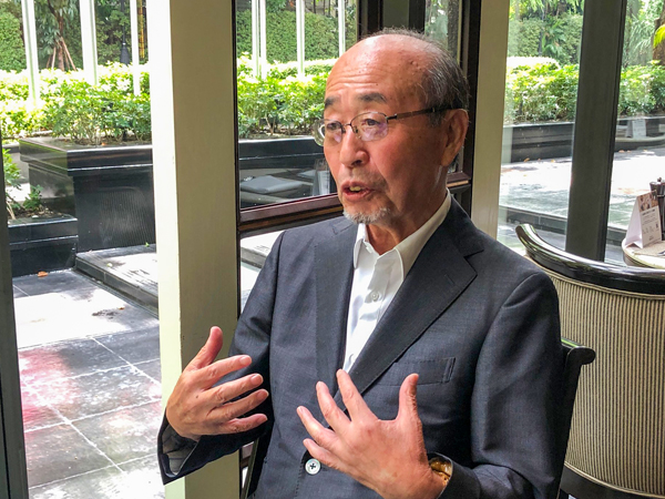 フレンドの山口馨右(けいすけ)会長。「旅行で訪れたチェンマイに惚れ込んで繰り返し足を運ぶうちに、日本から来た高齢の長期滞在者向けの介護用品の需要があると気付いた」と話す。当初は日本人をターゲットにしていたが、タイ人の高齢者や家族からも引き合いがあったという。=19年6月、タイ・バンコク(同)