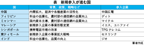 近年のアジアの参入事例を挙げると、2016年6月にマレーシアのYTLコミュニケーションズ(イエス)、同9月にマレーシアのウィービー・デジタル(ユニファイ・モバイル)とインドのリライアンス・ジオ・インフォコム、18年3月にミャンマーのテレコム・インターナショナル・ミャンマー(マイテル)が新規参入を果たしました。