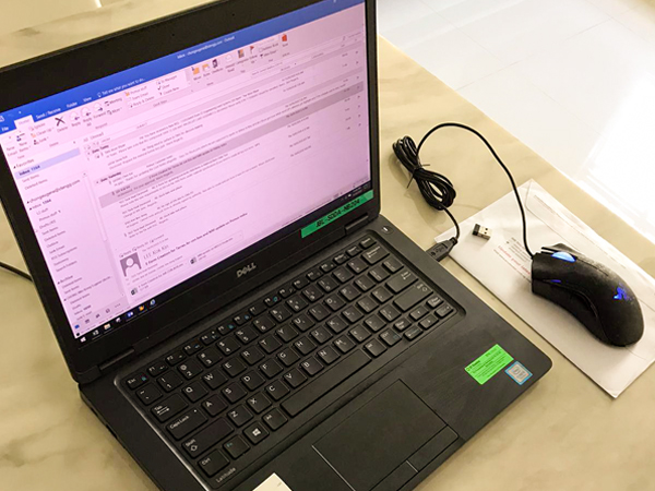 チャンさんが業務に使っている、デル製の社用ノートパソコン。オンラインミーティングの際は、シスコが開発した「Webex」というビデオ会議システムを利用しているという(チャンさん提供)