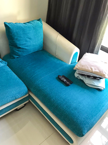 休憩時はパソコンデスクの真横にあるソファで横になり、リラックスできる音楽を聴く。「良い仕事をするには、ストレスを溜めずに解消することがベター」とチャンさん(同)