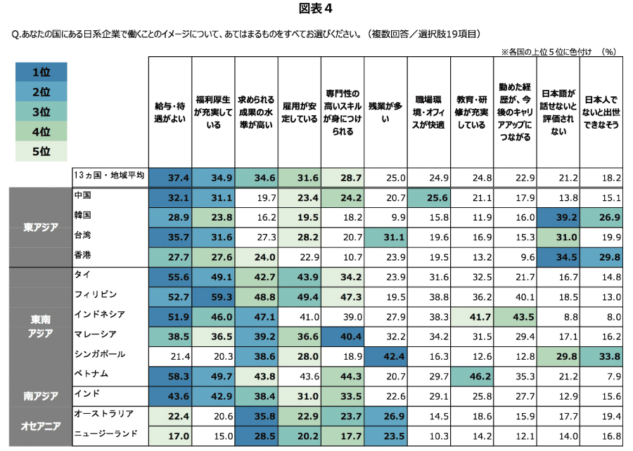 æ¥æ¬ä»¥å€ã¯ãäžåžã®ãããžã¡ã³ãè¡åã®äžäœé ç®ã¯è¯å®æèŠãïŒïœïŒå²ã«éããŸãããæ¥æ¬ã§ã¯ïŒäœã®é ç®ã§ãè¯å®æèŠã¯42ïŒ ã«ãšã©ãŸããè©äŸ¡ã¯ä»åœã«æ¯ã¹ãŠäœãã§ãã