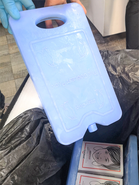 クーラーボックスは断熱材を何枚も重ねた構造で保冷剤を入れて運ぶ=同(NNA撮影)