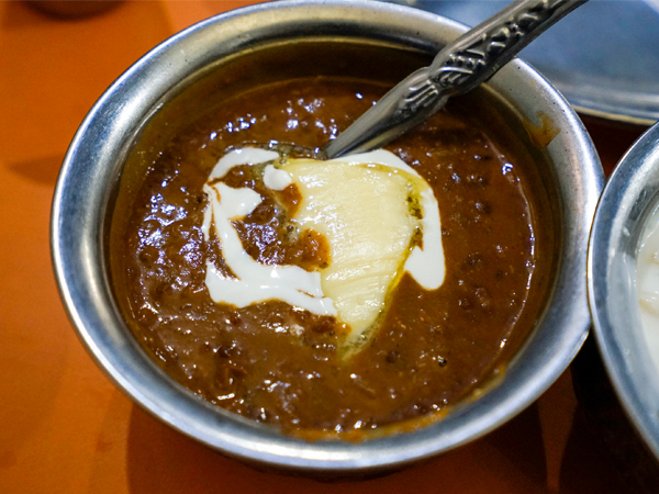 スパイスと共によく煮込んだ豆に、バターをたっぷり載せた「カケ・ディ・ハッティー」名物のダール・マッカニー