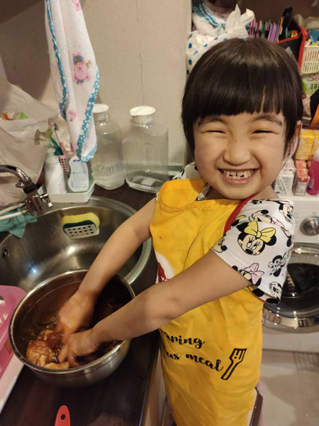 20年3月に発令された非常事態宣言では、子どもらの外出自粛が呼び掛けられた。それを機に、娘と一緒に料理をするなどおうち時間を満喫(同)