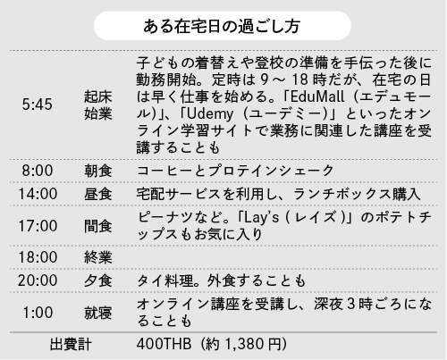 新型コロナの拡大防止策として、会社の要請で週5日のうち3日は在宅勤務のクンさん。タイでは2020年12月15日現在、市中感染はほぼ抑えられている状況だが、21年1月15日まで非常事態宣言の延長が決定しており、一部企業では今も在宅勤務を継続している。