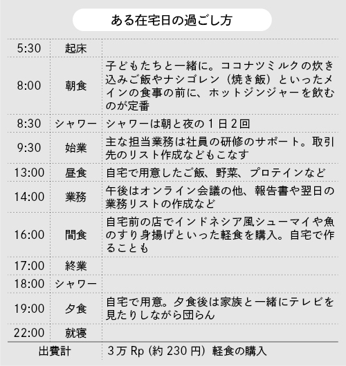 新型コロナウイルスの感染者が120万人を突破し、東南アジア最多となっているインドネシア。メルビさんの会社では、感染拡大が本格化した昨年の3月下旬から在宅勤務がスタート。子どもたちの学校もオンライン授業になったため、家で子どもたちと過ごす時間が何倍にも増えたという。