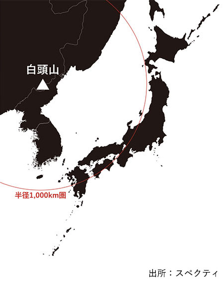 もし大噴火が起きると、北朝鮮と中国東北部では火山灰や溶岩流などで壊滅的な被害が出るほか、韓国ほぼ全域が火山灰に覆われると予想されます。日本でも中国地方を中心に火山灰が1センチメートル以上降り積もるとのシミュレーション結果が、韓国・釜山大学により発表されています。また、火山による直接的な被害に限らず、北朝鮮と中国の情勢を激変させるという意味で国際政治的なリスクもはらみます。