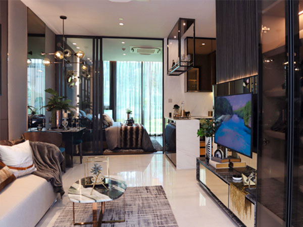タイの不動産開発大手スパライがバンコク中心部サトン通りに開発したコンドミニアムのモデルルーム=バンコク(NNA撮影)