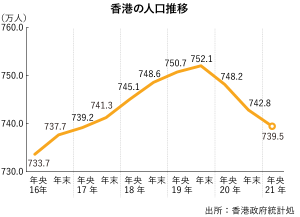 移住者に関する公式統計は存在しないが、多くの人口が流出していることは香港政府の人口統計からもうかがえる。