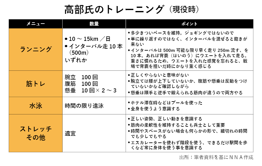 筋肉量が増えると消費カロリーも増えます。知り合いの格闘家はボディービルダーのような体つきですが「1食抜くと体が思うように動かない」と言います。これが兵士なら致命的な欠陥。求められるのは、パワフルだけど燃費の悪いトラックではなく、少しの燃料で長時間走るハイブリッド車(HV)なのです。