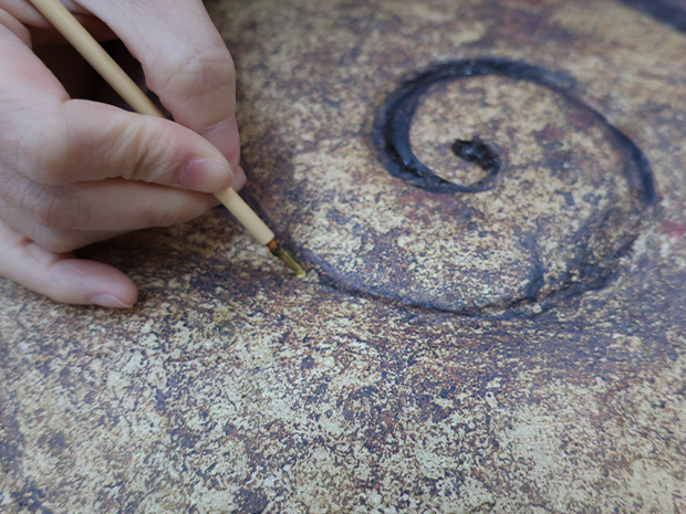 水没した壁画は高温多湿な地下に鎮座しており、色あせやカビの汚損が深刻だ。修復を進めると同時に本物の美しさを再現し、広く公開したいというタイ当局の思いを受け、20年から陶板の製作が始まった。