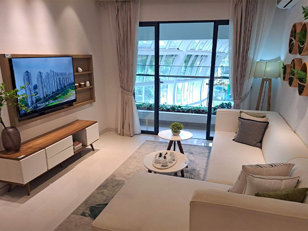 ãã©ã¬ã¹ãã»ã·ãã£ãŒã«ã¯çŸåšã60æ£ä»¥äžã®ãã³ã·ã§ã³ãš100æ£ä»¥äžã®äžæžå»ºãŠã»åæžå»ºãŠãã©ãããã人工島å ã®ã»ãŒã«ã¹ã®ã£ã©ãªãŒã«ã¯åç©ä»¶ã®ã¢ãã«ã«ãŒã ãèšããããŠãããå³¶å šäœã®å·šå€§ãªå®æäºæ³æš¡åããããæç«ããããã€ãã®é«å±€ãã³ã·ã§ã³ã«ãSOLD OUTãã®æãæããããŠããã